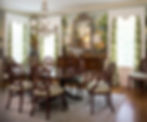 We love this Dutch Colonial in Durham's oldest, leafiest of neighborhoods. We amplified this traditional property by playing up the beautiful antiques and client's existing collections with color, texture, and design in its remodel. A hand-painted De Gournay mural is high ground for the dining room and opens to rooms in fuscia Chinoiserie paper, cool leather upholstered walls, and salmon grasscloth. One of our favorite clients, favorite homes!
